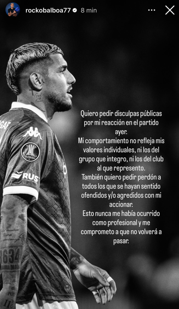 El delantero uruguayo cerró sus redes sociales tras el partido. Posteriormente, las reabrió el viernes para emitir un comunicado en sus historias de Instagram. En el mismo, pidió disculpas por su reprochable actitud en la cancha. Respondió que su comportamiento no refleja sus valores individuales ni los del club. Y además, pidió perdón a todos los que se sintieron ofendidos. Balboa prometió que esto nunca le había ocurrido y que no volverá a pasar.