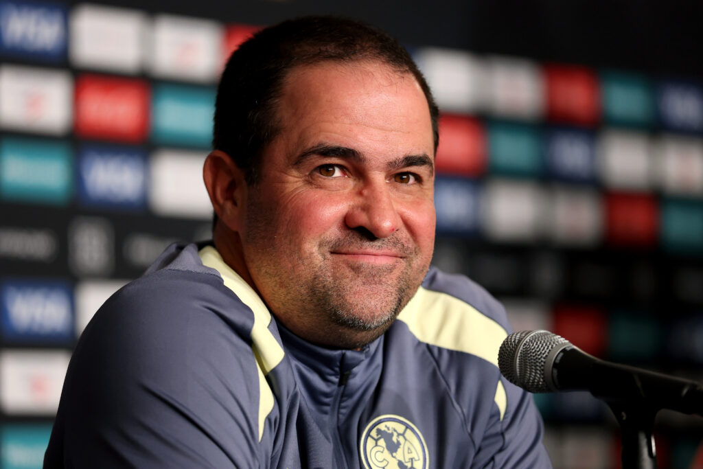 LOS ANGELES, CALIFORNIA - MAY 30: Manager André Jardine of Club América speaks to the media prior to the FIFA Club World Cup 2025 Playoff at BMO Stadium on May 30, 2025 in Los Angeles, California. (Photo by Luke Hales/Getty Images)