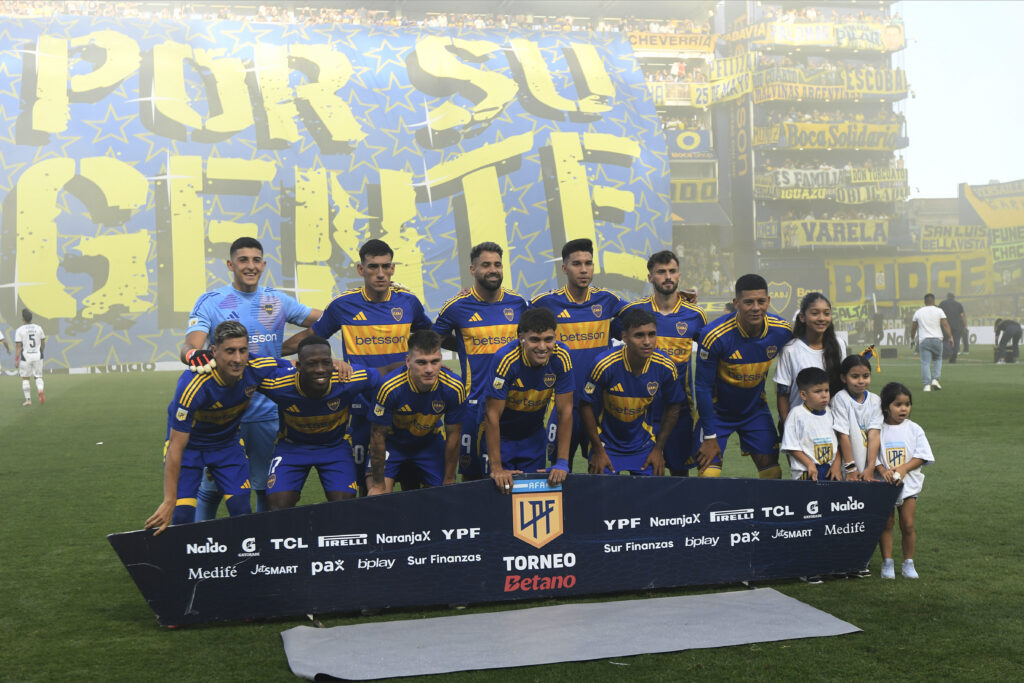 BUENOS AIRES, ARGENTINA - DECEMBER 14: Players of Boca Juniors pose prior to the Liga Profesional 2024 match between Boca Juniors and Independiente at Estadio Alberto J. Armando on December 14, 2024 in Buenos Aires, Argentina. (Photo by Gustavo Garello/Getty Images)