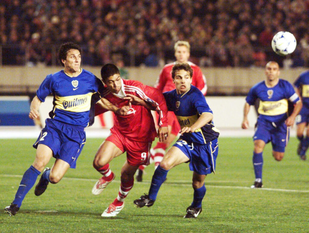TOKYO, JAPAN - NOVEMBER 27: FIFA WELTPOKAL FINALE 2001, Tokio; FC BAYERN MUENCHEN - BOCA JUNIORS 1:0 n.V.; Nicolas Andres BURDISSO/BOCA JUNIORS, Giovane ELBER/BAYERN, Jose Maria CALVO/BOCA JUNIORS (Photo by Alexander Hassenstein/Bongarts/Getty Images)