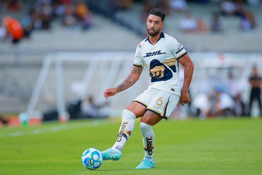 MEXICO CITY, MEXICO - AUGUST 24: Nathan Silva #6 of Pumas controls the ball during the 6th round match between Pumas UNAM and Puebla as part of the Torneo Apertura 2025 Liga MX at Estadio Olimpico Universitario on August 24, 2025 in Mexico City, Mexico. (Photo by Manuel Velasquez/Getty Images)