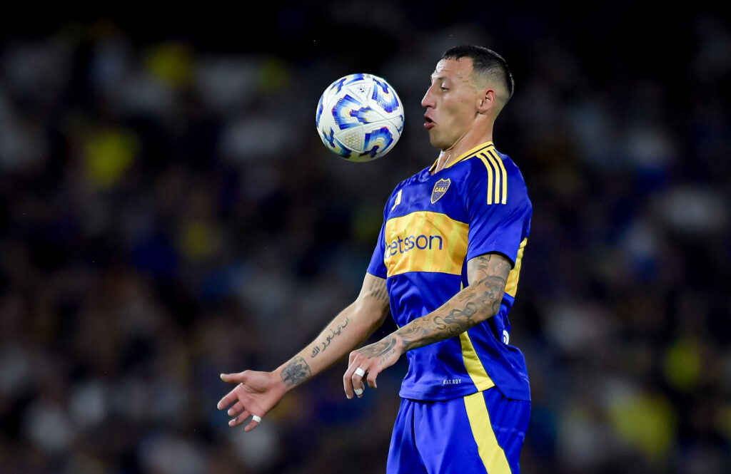 BUENOS AIRES, ARGENTINA - OCTOBER 27: Cristian Lema of Boca Juniors looks at the ball during a Liga Profesional 2024 match between Boca Juniors and Deportivo Riestra at Estadio Alberto J. Armando on October 27, 2024 in Buenos Aires, Argentina. (Photo by Marcelo Endelli/Getty Images)